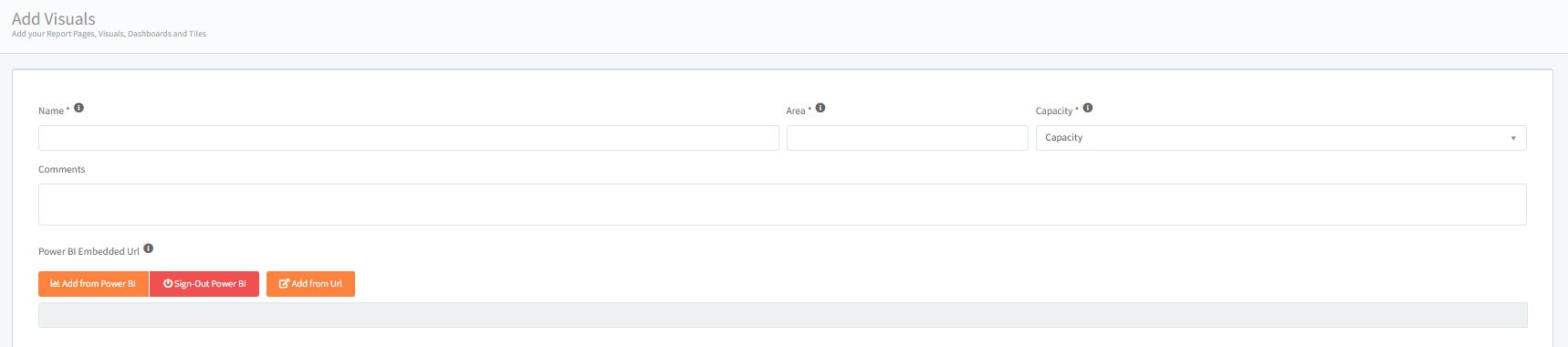 You can start adding new reports to PowerBI Portal by clicking Reports in the navigation menu to open the Reports List page and then clicking the Add New button. There are three mandatory fields to fill when you add a report to PowerBI Portal: a unique Name of your choice, the report’s URL in Power BI Online, and the Power BI capacity used (previously configured).