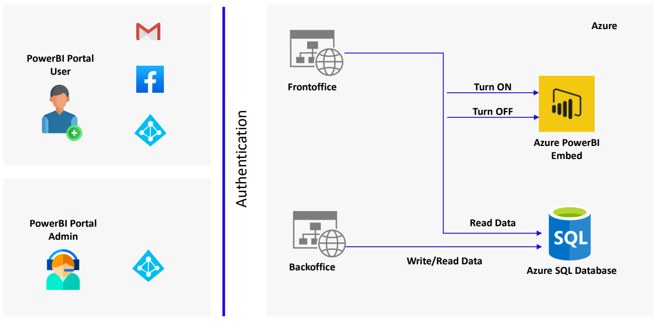 PowerBI Portal is deployed entirely on Microsoft Azure, which provides: