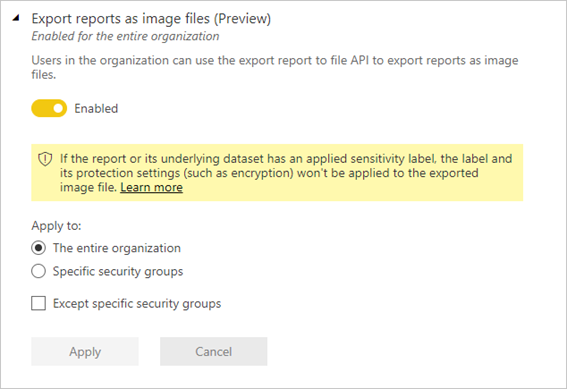 - When exporting to .png, sensitivity labels are not supported.
