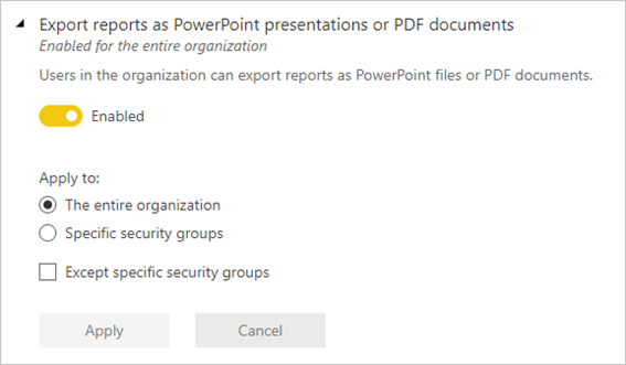 -Export reports as PowerPoint presentations or PDF documents - Enabled by default.