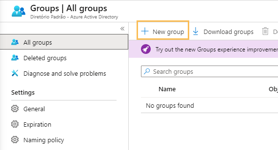 Click “New group” and create a security group called "PowerBI Portal".
