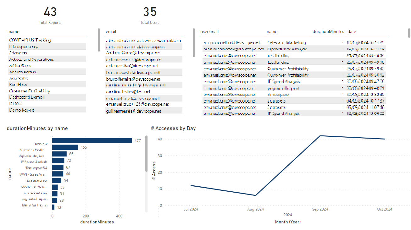 After you input these 3 parameters, all the data will be imported and presented to you. You'll be able to view the users and reports added, reports' access, and access history.